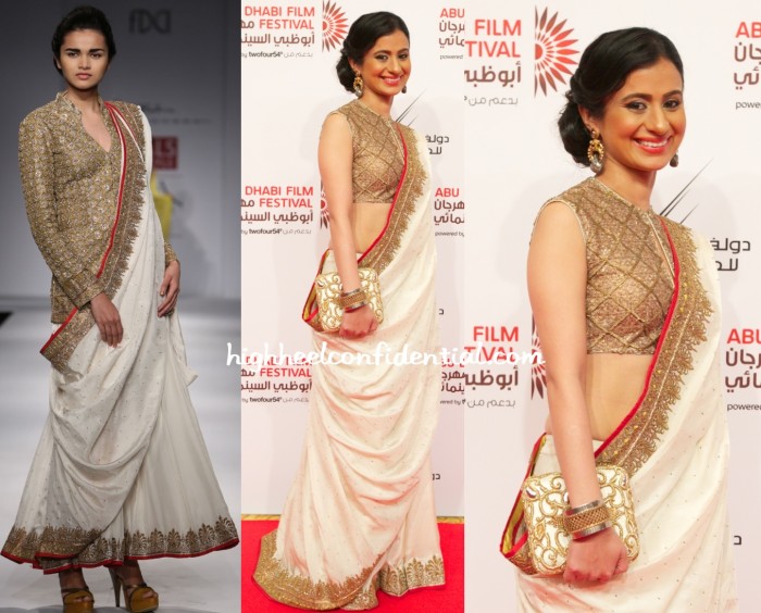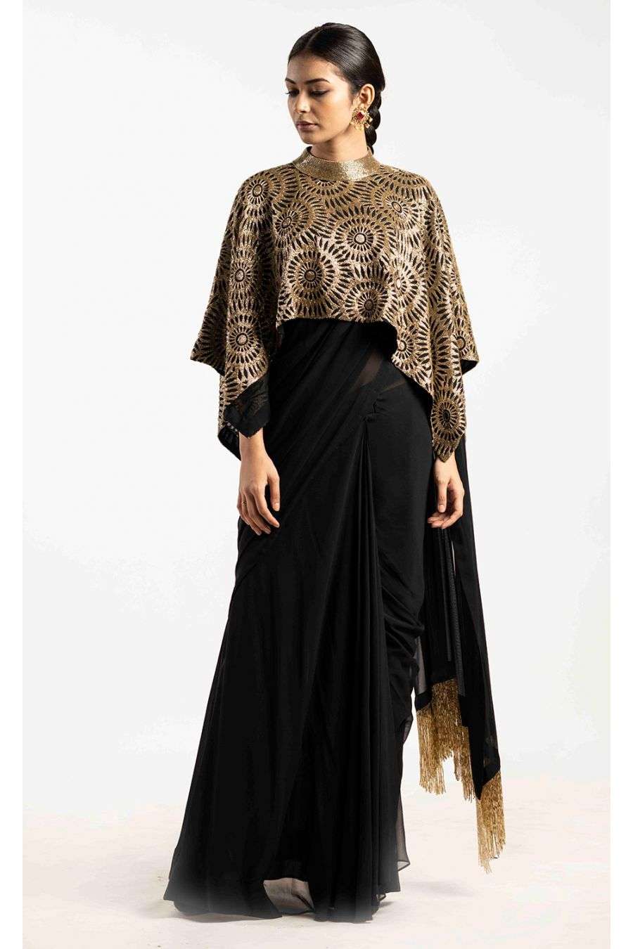 Anand Kabra Sarees / Grey floral printed draped saree set with jacket.