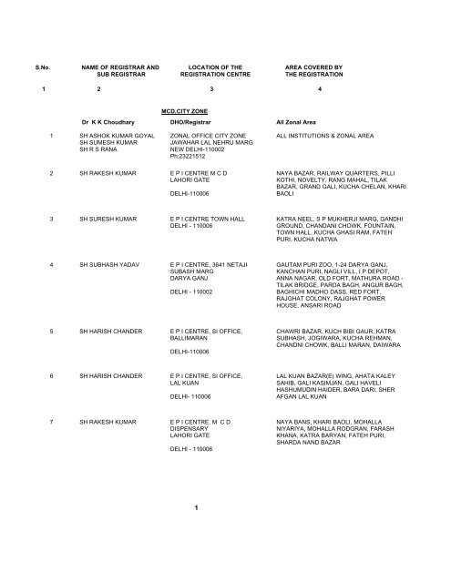 S No Name Of Registrar And Location Of The Area 27 in delhi's tilak vihar locality in coronavirus grip.