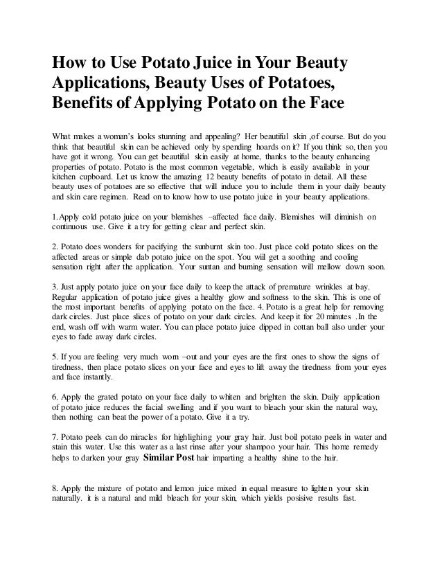Uses Of Potato Juice For Face / Now mix them and blend it in a blender for 25 to 30 seconds.